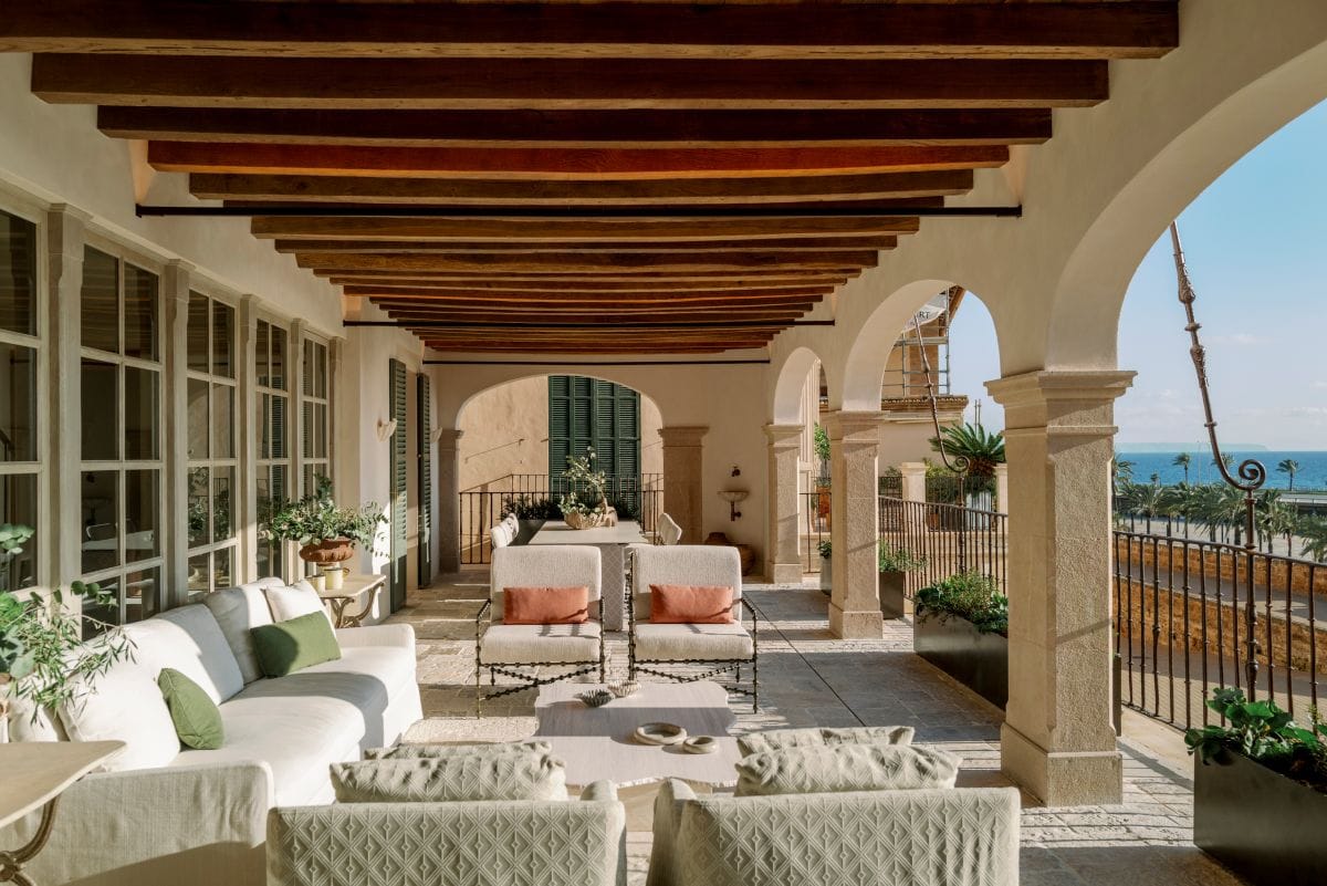 The mansion offers eight to nine spacious bedrooms with en-suite bathrooms, accommodating up to 16–18 guests. Each room is individually designed with high-quality materials, natural light and a restrained colour palette. Selected rooms feature views over the harbour or Palma’s historic rooftops.