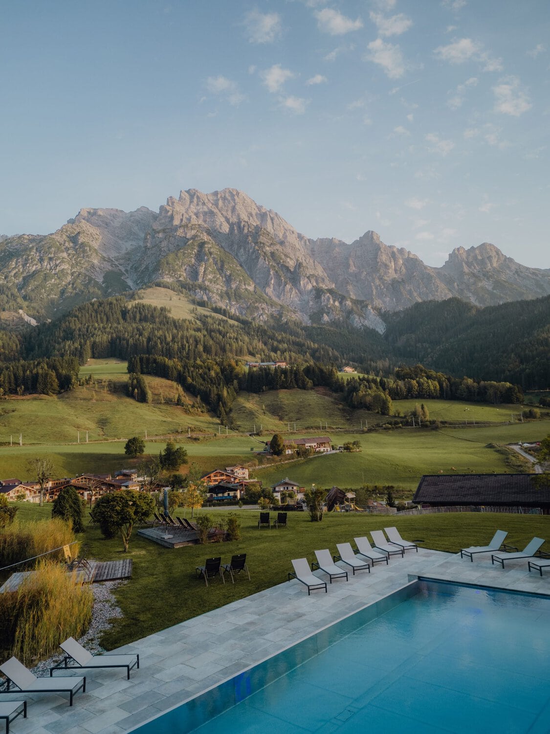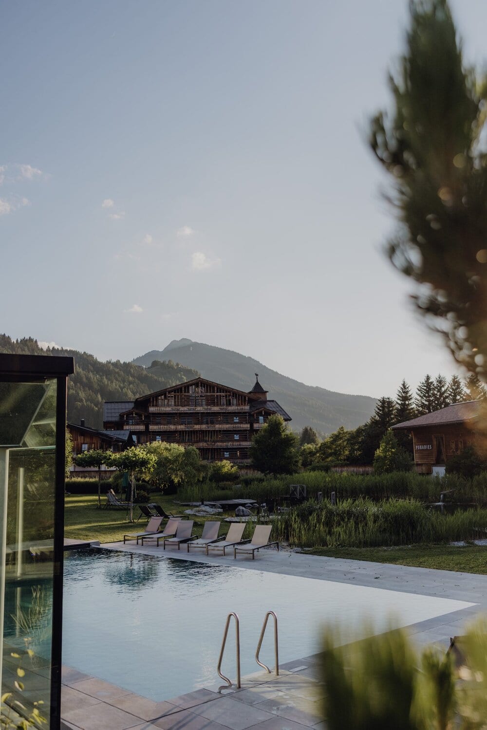 Oder der Tag beginnt ganz bewusst langsam: ein wenig länger im warmen Bett bleiben, bevor es ins Heaven Spa geht. Zwischen beheiztem Pool, Naturbadeteich und Adults-Only-Sauna gleitet man dahin, während das Bergpanorama stets präsent bleibt.